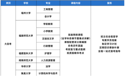 福建省10月大自考报考专业: